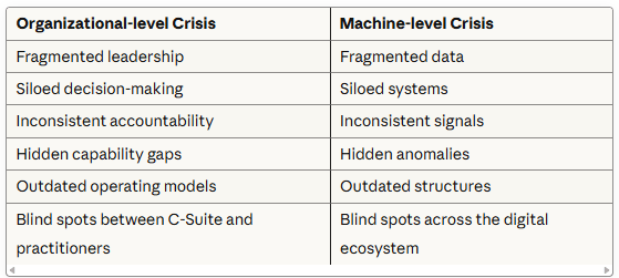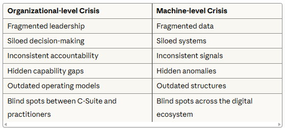 ChandraKumar’s article describes the machine-level crisis: fragmented data, siloed systems, inconsistent signals, hidden anomalies, outdated structures, and blind spots across the digital ecosystem.