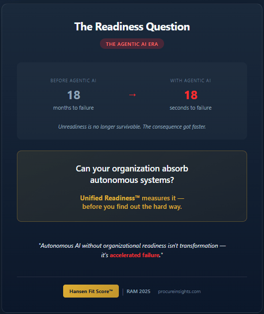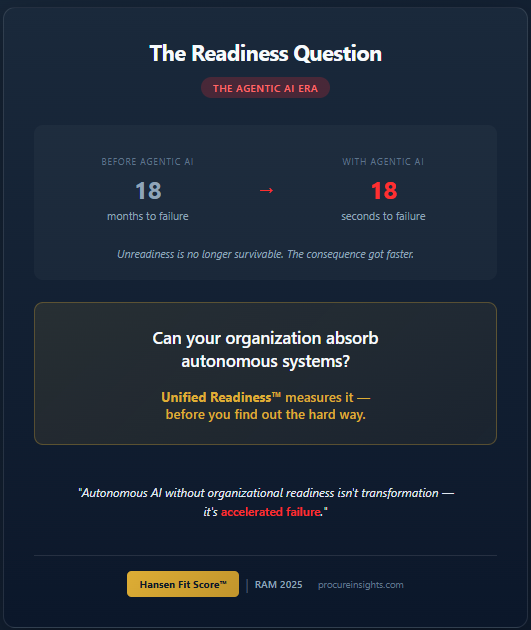 Procurement unreadiness took 18 months to show. Agentic AI unreadiness shows in real time.