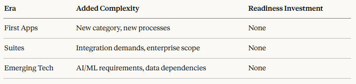 The technology demanded more organizational readiness with each wave. The industry invested nothing in building it.