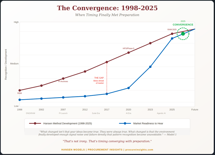 And now — in 2025 — the very technology the industry is hyping without understanding has become my amplifier. The AI models that everyone is rushing to deploy without readiness assessment are the same models that finally let me articulate why that rush will fail.