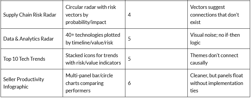 Here’s what I found across recent Gartner visuals, scored on clarity (1-10, where 10 = immediately actionable):