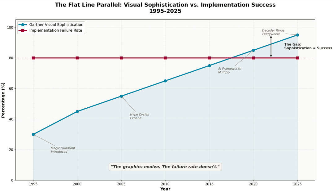 With Deloitte, AI was the mechanism, but the real failure was process and accountability. With Gartner, the question is whether the same lack of accountable structure is hiding behind a sophisticated graphic.