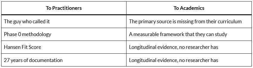 Academics are circling because the Procurement Insights archives contain something their textbooks don’t: 17 years of documented evidence that the frameworks they’re teaching are incomplete — and a methodology that fills the gap.