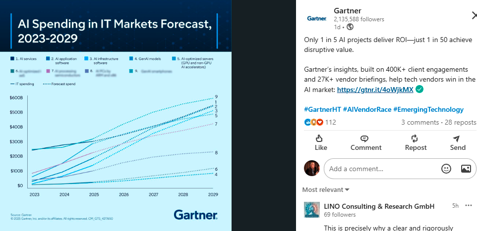 The Strategic Context The 2026 CIO Agenda reveals that 91% of your peers are increasing GenAI spending, yet Gartner openly admits that only 1 in 5 AI projects deliver ROI. This $600B+ “Path A” trajectory is fueled by a search for career insurance rather than operational success.