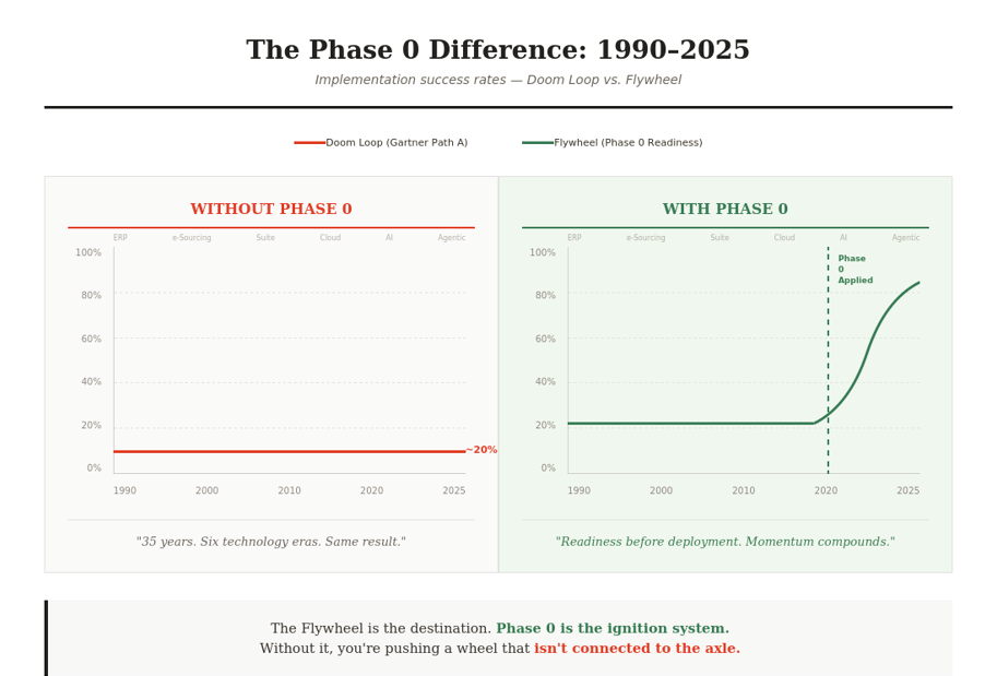 Without Phase 0, organizations don’t spin a Flywheel—they enter the Doom Loop: new technology, new consultant, new strategy, same misalignment. Motion without traction. Effort without compounding.