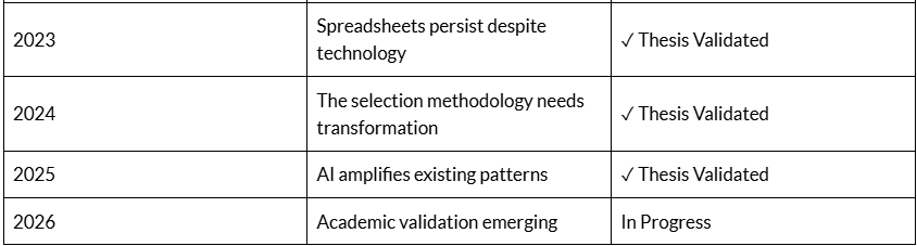 That’s why I formalized Phase 0. That’s why I created the Hansen Fit Score. That’s why I documented 18 years of consistent patterns.