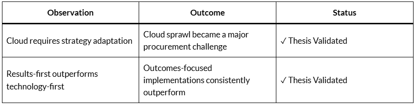 Core Thesis: Cloud adoption requires procurement strategy adaptation. Results-first approaches (outcomes before technology) succeed where technology-first fails.