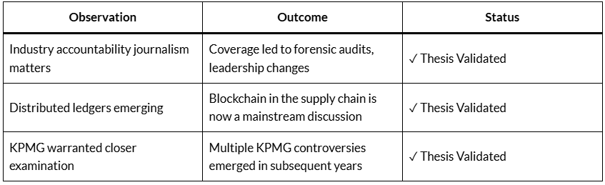 2026 Reflection: The decision to pursue accountability journalism — despite litigation risk — established the credibility that practitioners now recognize.