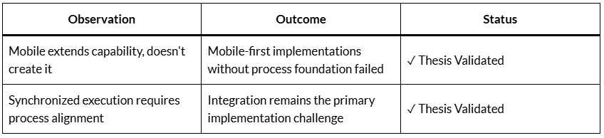 Core Thesis: Mobile technology enables synchronized execution — but only if the underlying processes support it. Technology extends capability; it doesn’t create it.