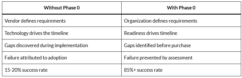 Phase 0 doesn’t guarantee success. It eliminates the reasons for predictable failure.