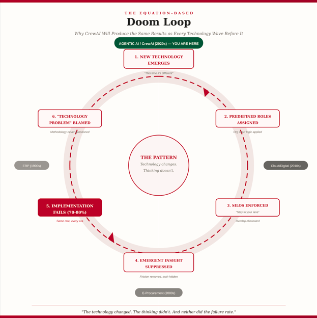 It should. This is org-chart thinking applied to AI. It is the same siloed, equation-based logic that drove ERP implementations, e-procurement rollouts, and digital transformations straight into the 70–80% failure band.
