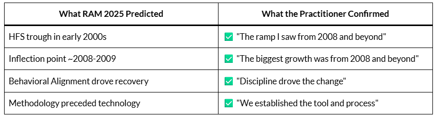 What RAM 2025 surfaced from decades of public data, the practitioner validated from lived experience.