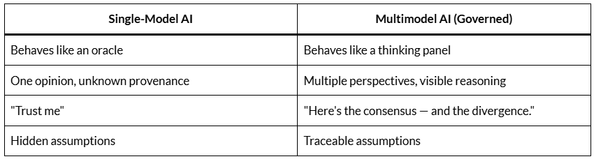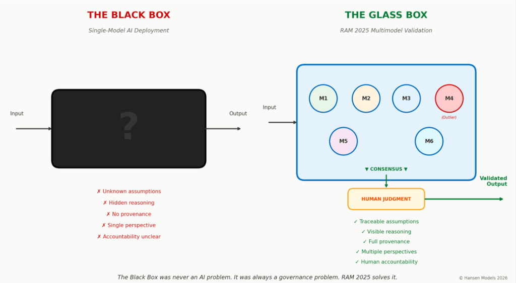 The concern is usually framed as the AI Black Box problem — the fear that artificial intelligence produces answers no one can explain, validate, or govern. It’s a legitimate concern. But after nearly three decades of studying failed and successful transformations — and now working directly with multimodel AI systems — I’ve come to a different conclusion: