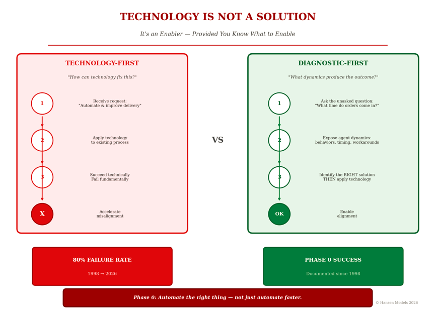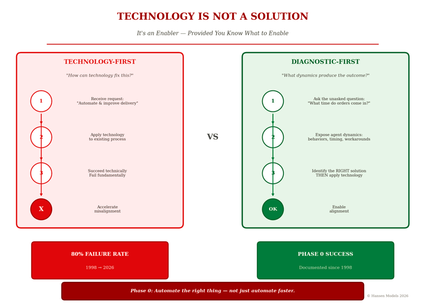 Without that diagnostic step, technology doesn’t solve problems—it simply accelerates misalignment.
