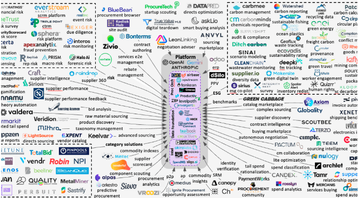 The expanding universe of procurement technology providers — 200+ solutions across categories