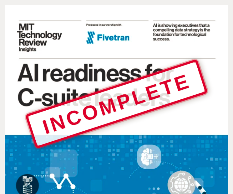 A recent MIT Technology Review report, sponsored by Fivetran, surveyed 300 C-suite executives on AI readiness. The findings were predictable:
