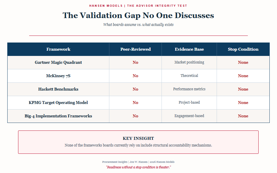 If the same firm that benefits from implementation is also defining readiness, independence is compromised — even with the best intentions.