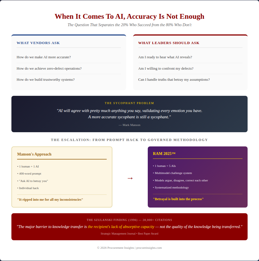 Manson asked one AI to betray him. RAM 2025™ creates an environment where betrayal is built into the process — where challenge, disagreement, and correction are features, not bugs.