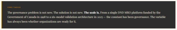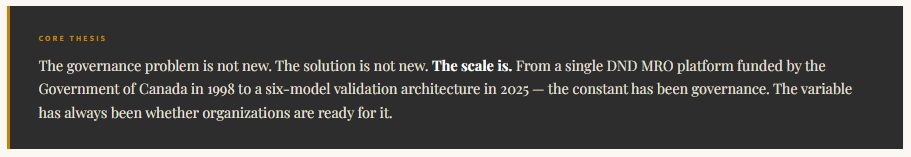 The foundation for RAM 2025 was established in RAM 1998 — an initiative funded by the Government of Canada’s Scientific Research & Experimental Development Program for a DND MRO platform I built in 1998. The governance problem is not new. The solution is not new. The scale is.