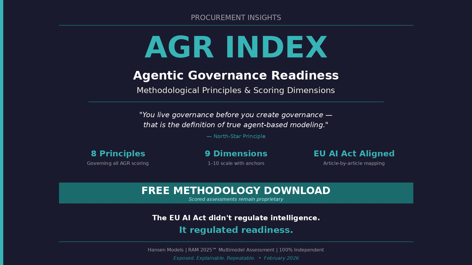 Download the full methodology: Procurement Insights AGR Index: Agentic Governance Readiness — Methodological Principles & Scoring Dimensions