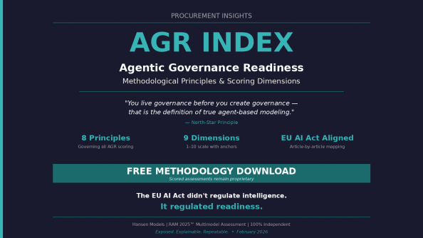 The Procurement Insights AGR Index is produced by Hansen Models (1001279896 Ontario Inc.) under the RAM 2025™ Multimodel Assessment framework. 100% independent — no vendor sponsorship. The methodology was validated across six independent AI models with unanimous convergence on the derivation approach.