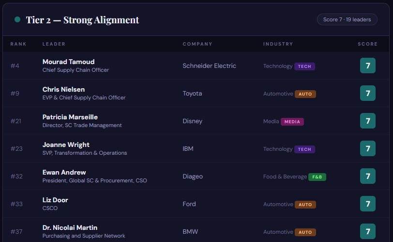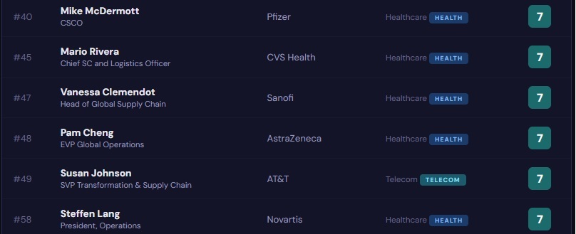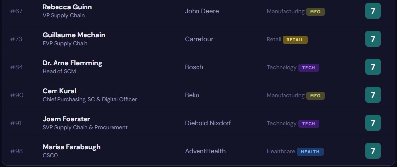 Supply Chain Digital ranks leaders on scale, technology adoption, and strategic influence. Those are real measurements of real capability.