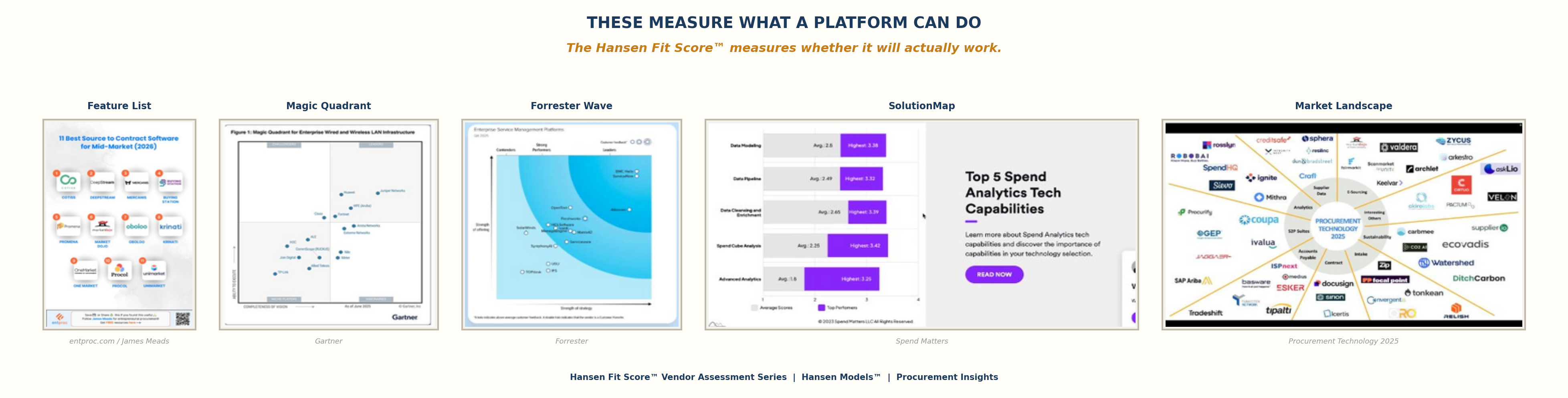 The Hansen Fit Score™ is not a better version of the Magic Quadrant. It’s not competing with Forrester Waves or SolutionMaps. Those frameworks measure capability — and they do it well within their methodological constraints.