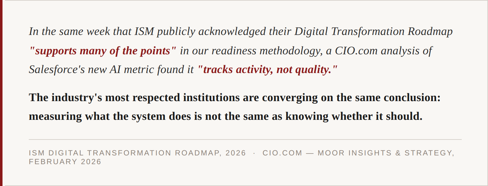What I will tell you is this: our assessments are built on an 18-year documented archive. They’ve been validated by ISM, stress-tested by a Fortune 50 procurement executive, confirmed by practicing CIOs running live implementations, and endorsed by analysts who have spent their careers evaluating this industry. The methodology works. The evidence says so. The market says so.