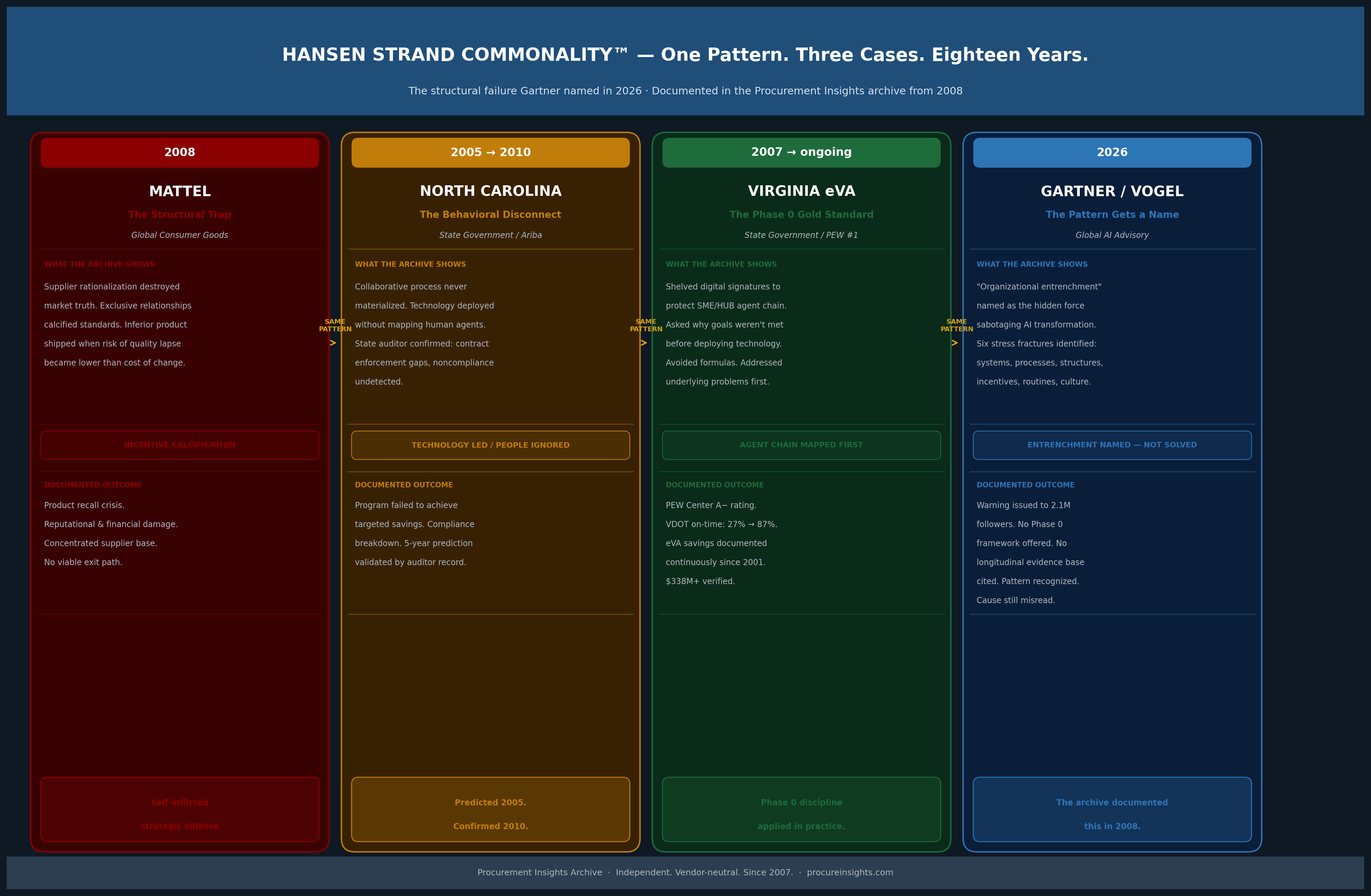 It is a rigorous and important insight. It is also an insight the Procurement Insights archive documented — across three separate, unrelated cases — beginning in 2008.