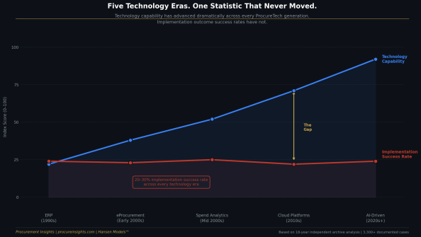 Across the Procurement Insights archive — more than 3,300 published documents spanning eighteen years and every significant technology era — one pattern appears with a consistency that is difficult to dismiss as coincidence: