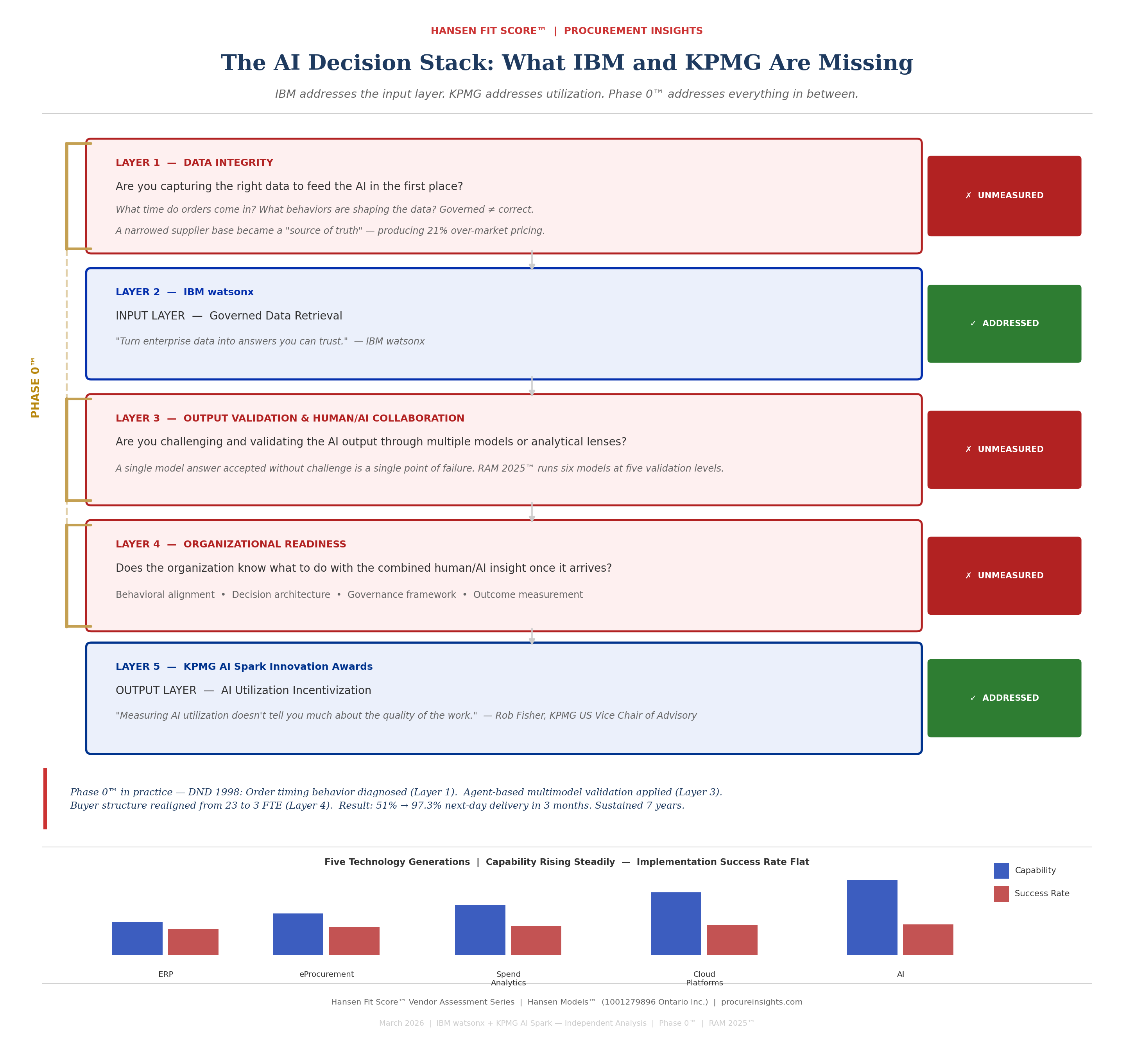 That middle layer — the readiness layer — is what Phase 0™ diagnoses. It is the only layer that determines whether the investment in the other two produces results or produces, as I noted in the IBM thread, a faster wrong answer.