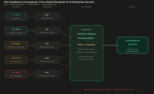 The LinkedIn discussion that prompted this post began with David Loseby’s observation about ISO 25500 — the new international standard for supply chain interoperability and integration, built specifically to address the data quality failures that prevent AI from delivering on its promise in procurement and supply chain environments.