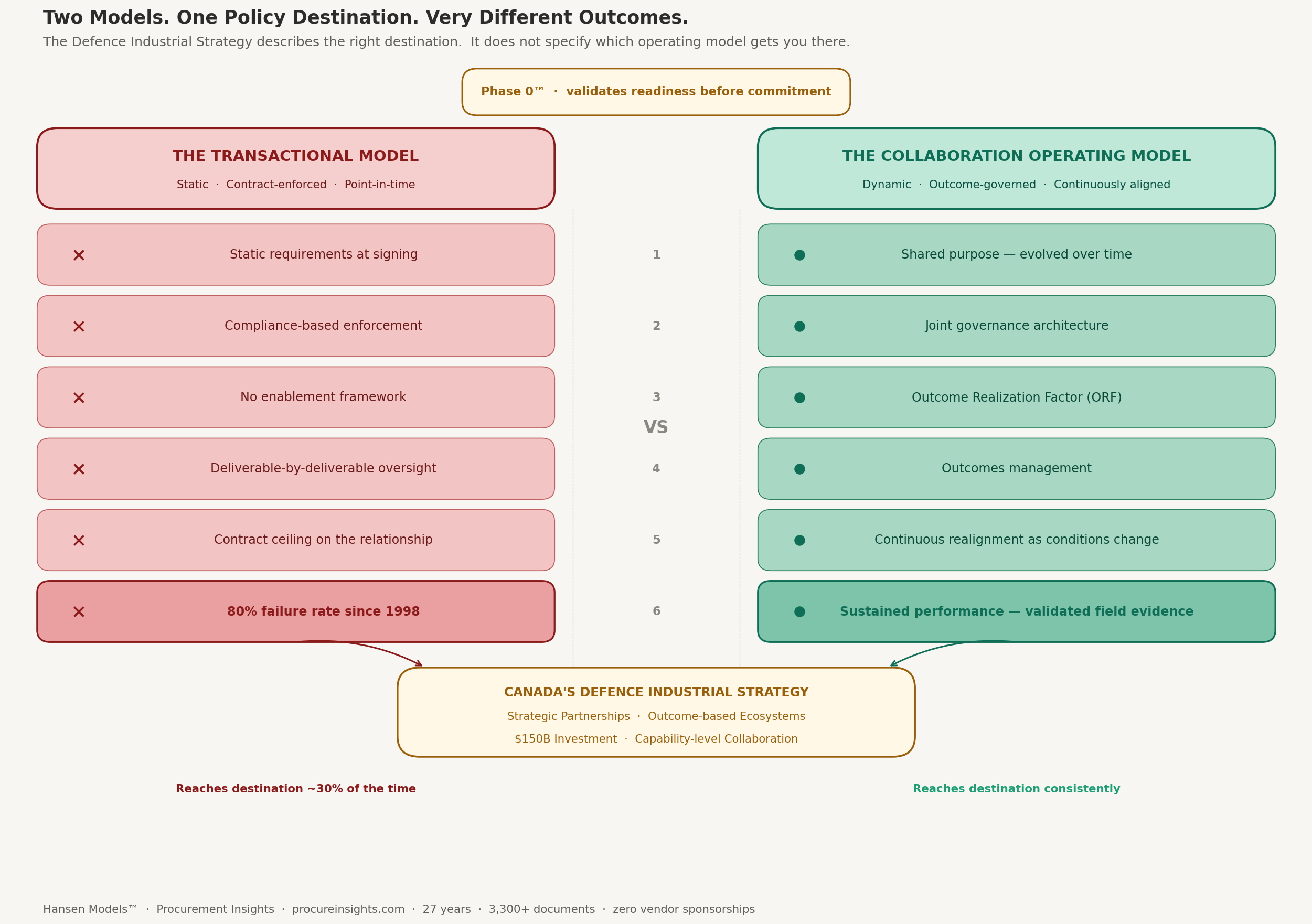 And throughout that time, forward-thinking people inside PSPC, DND, and allied agencies have been quietly building toward the same destination — relationship charters, collaboration accords, and outcome-focused governance arrangements that reflect exactly the principles the evidence has consistently supported.