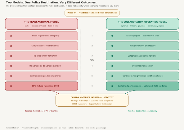 That sequence — COM as destination, readiness as prerequisite — is the complete picture. Canada now has the policy mandate and the funding. What it needs is the collaboration operating model with the discipline to validate readiness before billions of dollars starts moving.