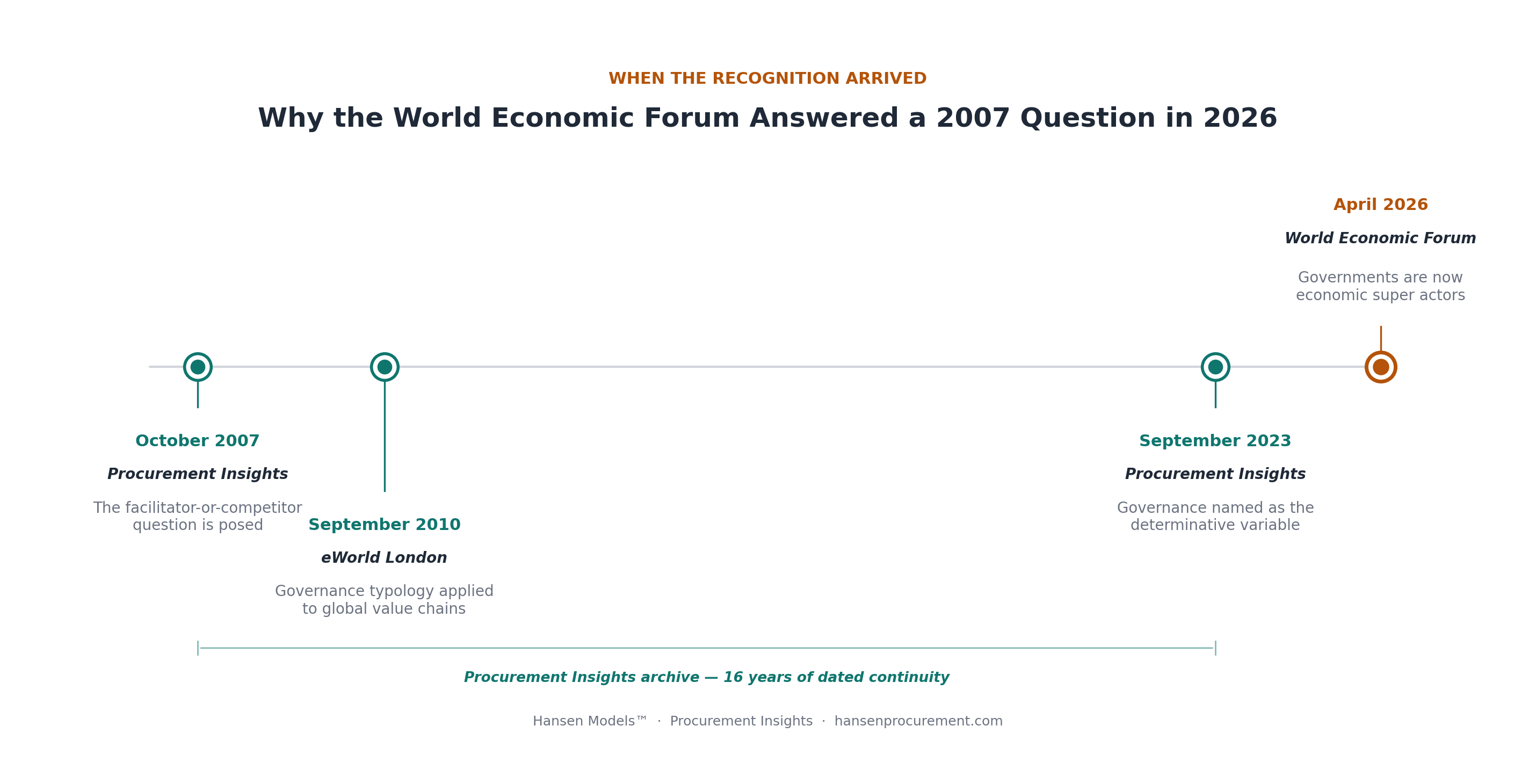 The post was not a policy paper. It was a working procurement analyst asking whether the institutional architecture was capable of doing what the institutional rhetoric claimed to want. The structural variable was not market efficiency. It was governance configuration. That distinction was the entire point of the post in 2007. It is the entire point of the WEF brief in 2026.